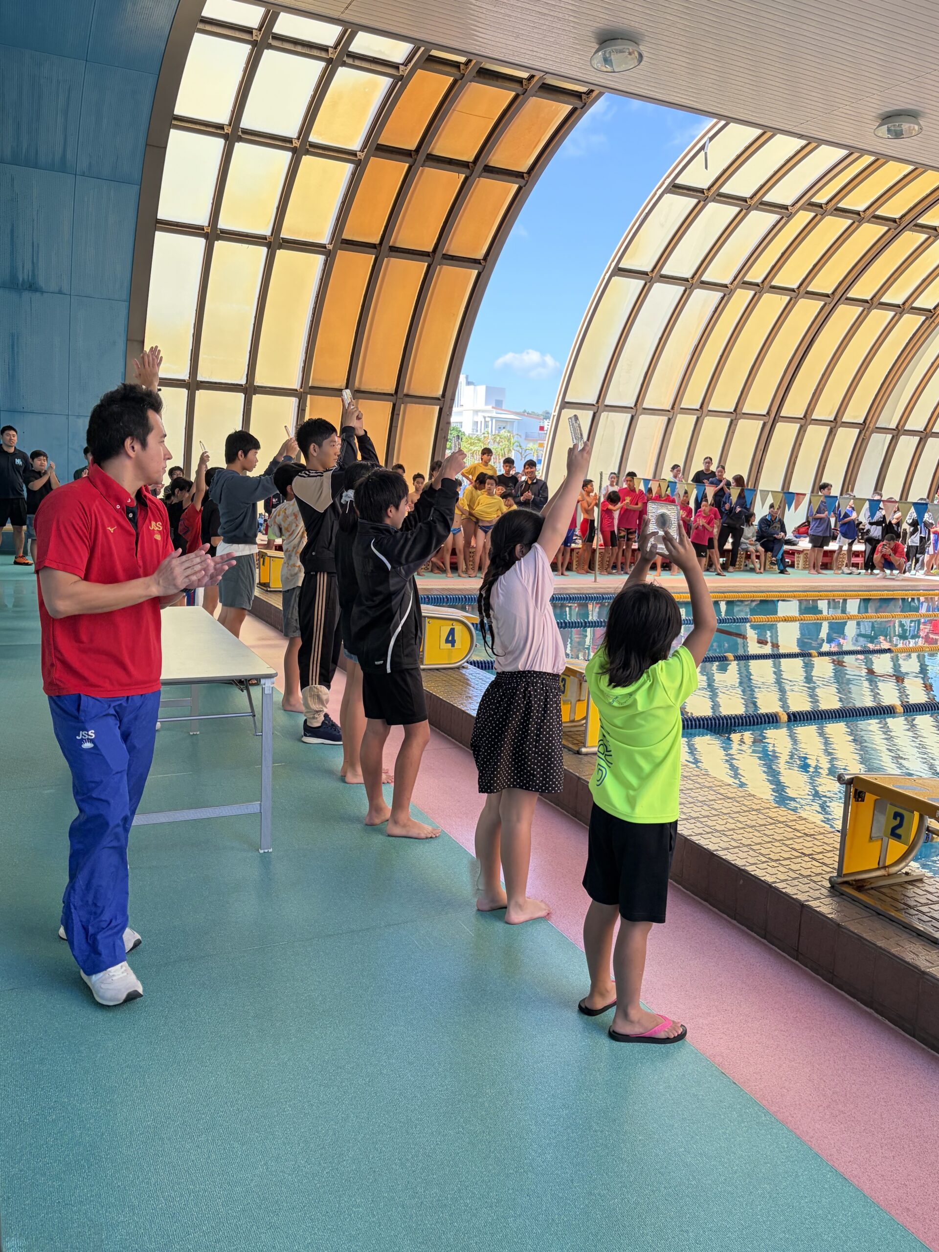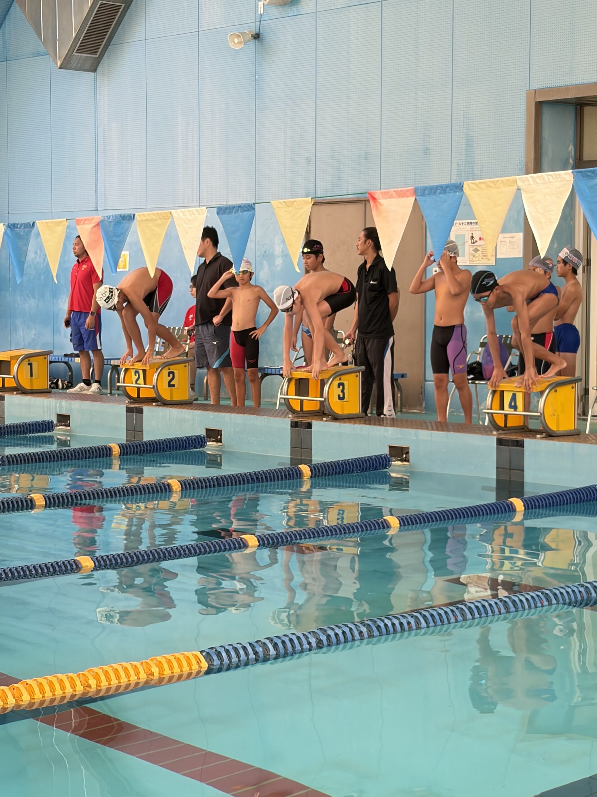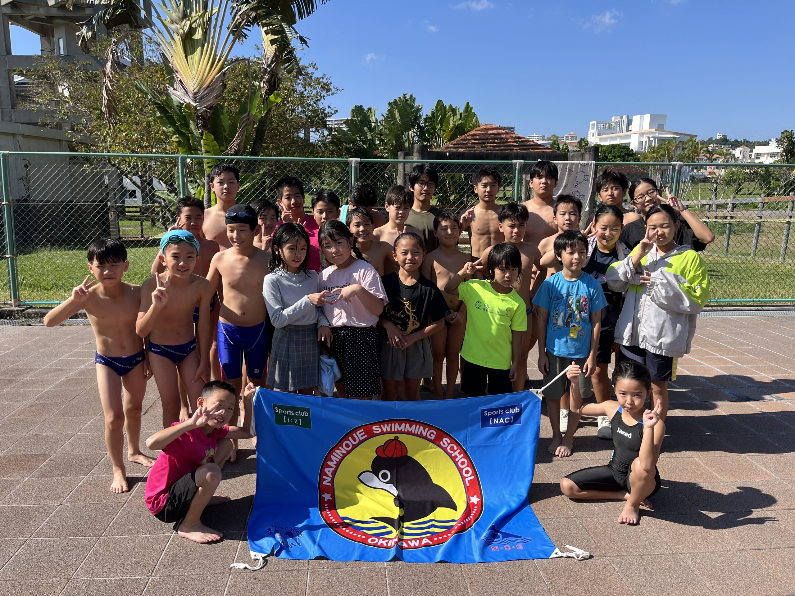 沖縄県のスイミングクラブ協議会に所属しているクラブで構成運営する大会になっています。水泳大会には初参加する子やまだ発展途上にある子達が参加する大会になっています。波の上スイミングスクールからは37名の参加者、内2名は病欠になりましたが他スイミングスクール中もっとも最多人数で頑張りました💪