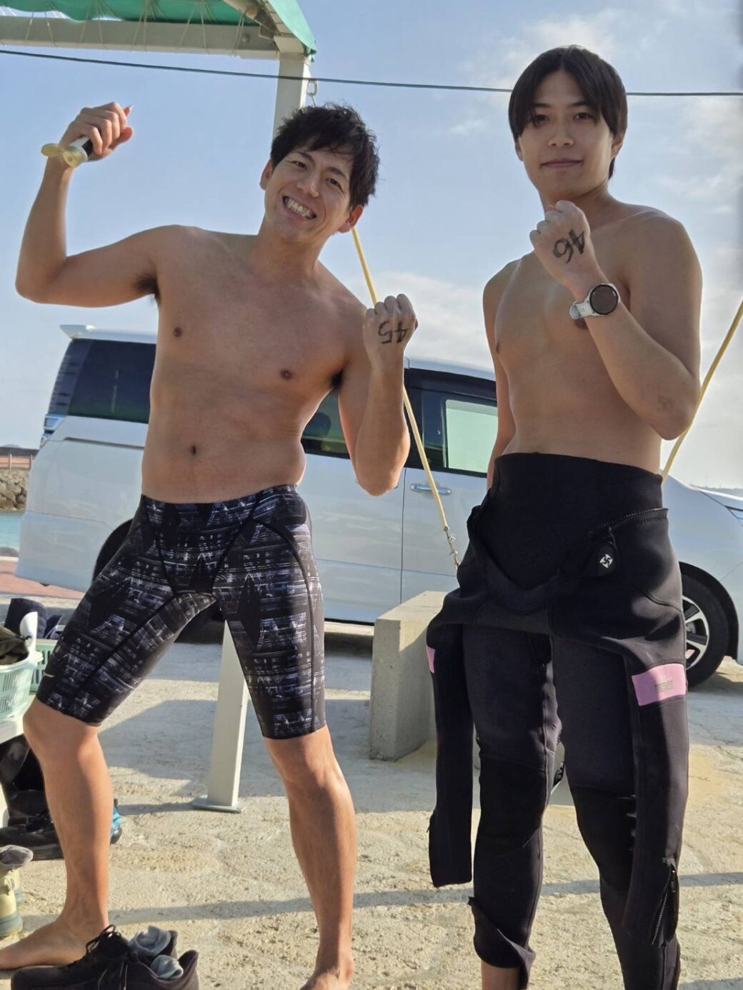 直前にウエットスーツを借りれて